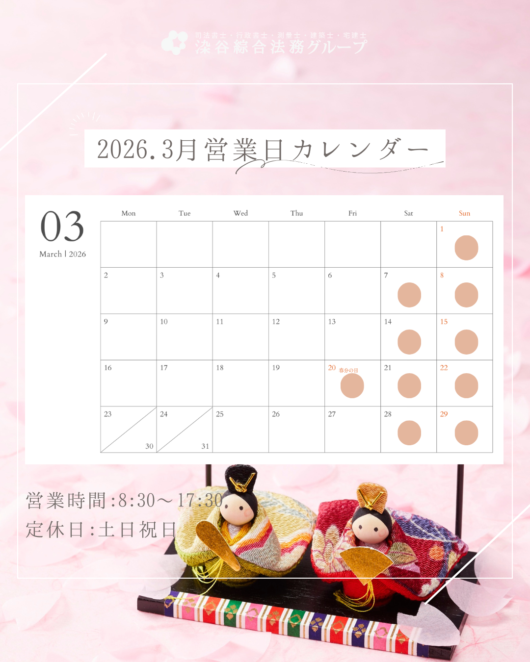 2026年|3月営業日|行政書士染谷綜合法務事務所